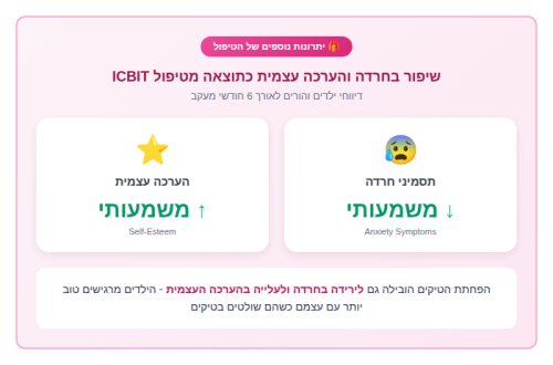 שיפור גם בתחומים נוספים: הערכה עצמית עלתה, חרדה ירדה.